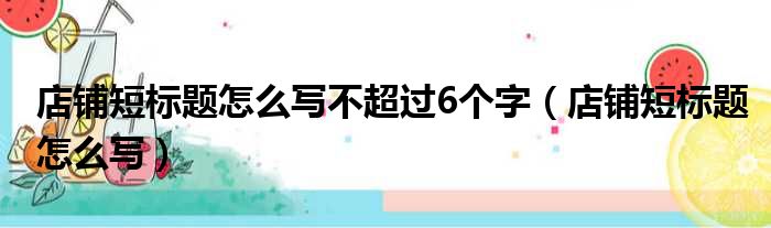 店铺短标题怎么写不超过6个字(店铺短标题怎么写)