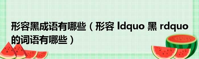 形容黑成语有哪些(形容 ldquo 黑 rdquo 的词语有哪些)