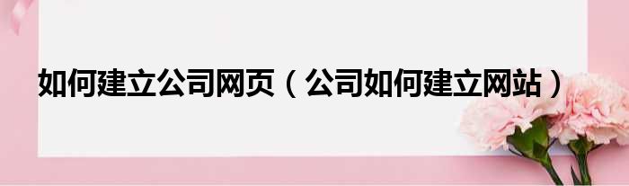 如何建立公司网页(公司如何建立网站)