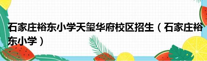 石家庄裕东小学天玺华府校区招生(石家庄裕东小学)