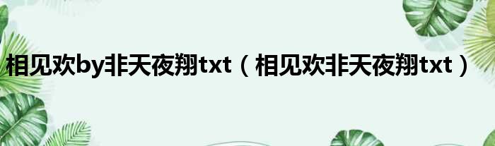 导读 大家好,小东方来为大家解答以上的问题。相见欢by非天夜翔txt,相见欢非天夜翔txt这个很多人还不知道,现在让我们一起来看看吧!1、《相见欢