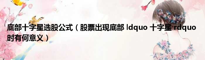 底部十字星选股公式(股票出现底部 ldquo 十字星 rdquo 时有何意义)