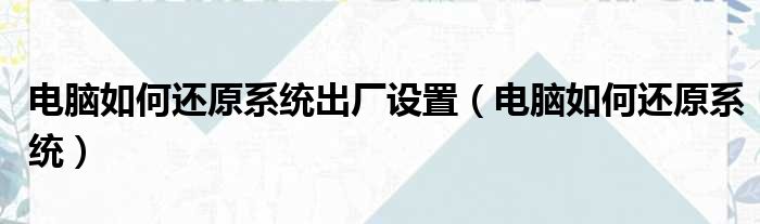 电脑如何还原系统出厂设置(电脑如何还原系统)