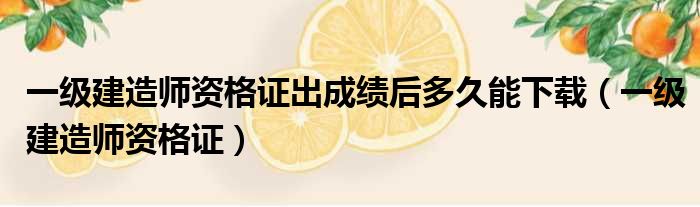 一级建造师资格证出成绩后多久能下载(一级建造师资格证)