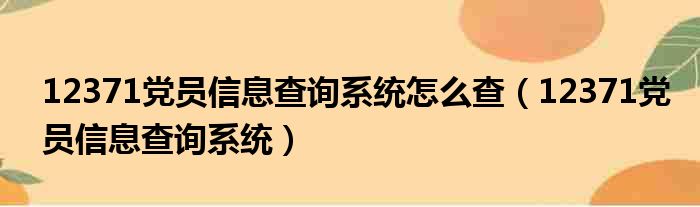 12371党员信息查询系统怎么查(12371党员信息查询系统)