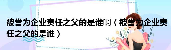 被誉为企业责任之父的是谁啊(被誉为企业责任之父的是谁)