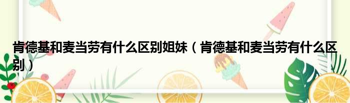 肯德基和麦当劳有什么区别姐妹(肯德基和麦当劳有什么区别)