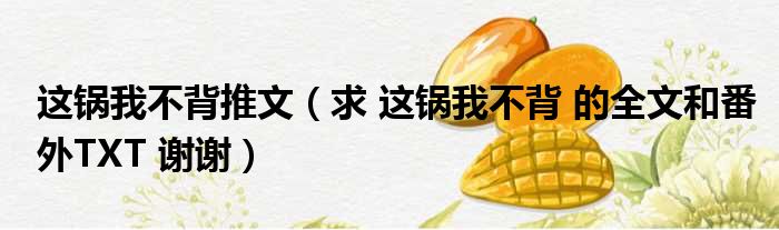 这锅我不背推文(求 这锅我不背 的全文和番外TXT 谢谢)
