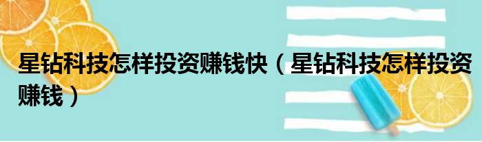 星钻科技怎样投资赚钱快(星钻科技怎样投资赚钱)