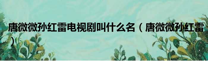 导读 大家好,小东方来为大家解答以上的问题。唐微微孙红雷电视剧叫什么名,唐微微孙红雷这个很多人还不知道,现在让我们一起来看看吧!1、是孙红