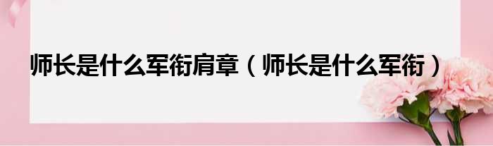 导读 大家好,小东方来为大家解答以上的问题。师长是什么军衔肩章,师长是什么军衔这个很多人还不知道,现在让我们一起来看看吧!1、你好,你的问