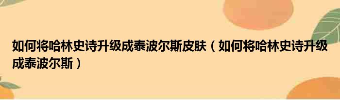 如何将哈林史诗升级成泰波尔斯皮肤(如何将哈林史诗升级成泰波尔斯)