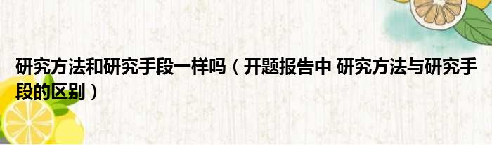 研究方法和研究手段一样吗(开题报告中 研究方法与研究手段的区别)