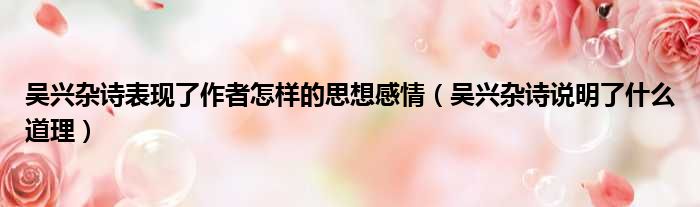 吴兴杂诗表现了作者怎样的思想感情(吴兴杂诗说明了什么道理)