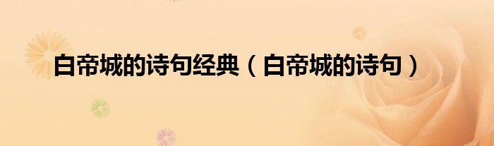 大家好,小东方来为大家解答以上的问题。白帝城的诗句经典,白帝城的诗句这个很多人还不知道,现在让我们一起来看看吧!