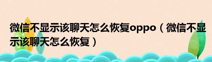 微信不显示该聊天怎么恢复oppo(微信不显示该聊天怎么恢复)