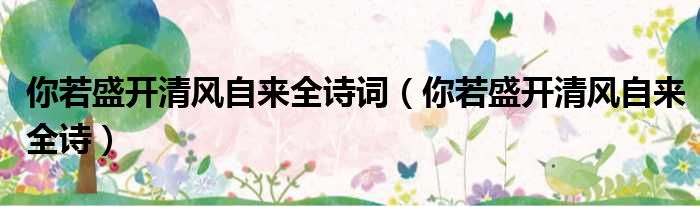 你若盛开清风自来全诗词(你若盛开清风自来全诗)