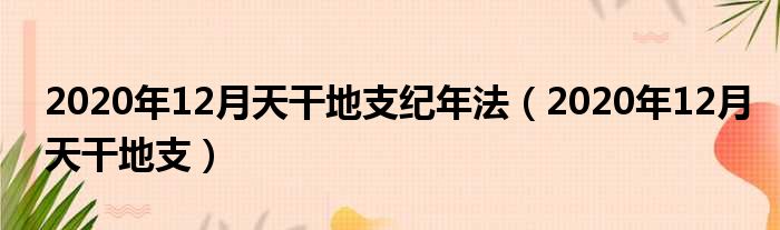 导读 大家好,小东方来为大家解答以上的问题。2020年12月天干地支纪年法,2020年12月天干地支这个很多人还不知道,现在让我们一起来看看吧!1、年