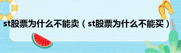 大家好,小东方来为大家解答以上的问题。st股票为什么不能卖,st股票为什么不能买这个很多人还不知道,现在让我们一起来看看吧!
