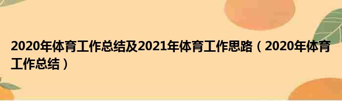 2020年体育工作总结及2021年体育工作思路(2020年体育工作总结)