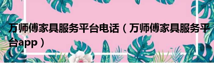 万师傅家具服务平台电话(万师傅家具服务平台app)