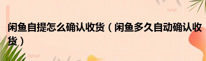 闲鱼自提怎么确认收货(闲鱼多久自动确认收货)