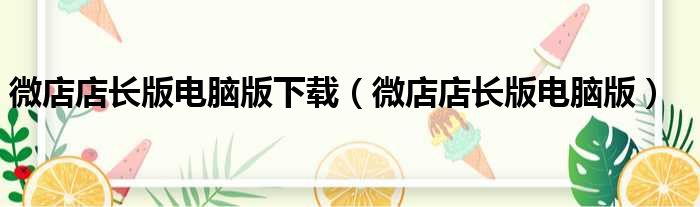 微店店长版电脑版下载(微店店长版电脑版)