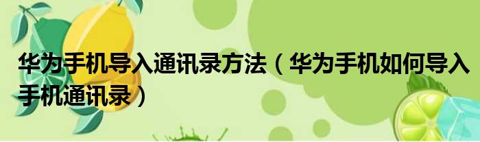 华为手机导入通讯录方法(华为手机如何导入手机通讯录)