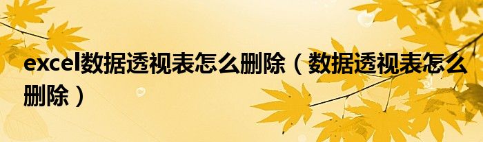 excel数据透视表怎么删除(数据透视表怎么删除)