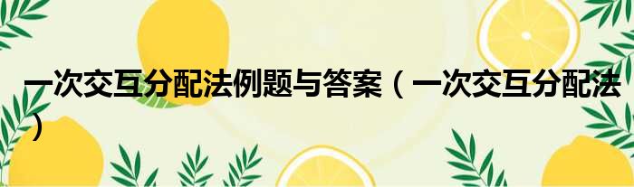 一次交互分配法例题与答案(一次交互分配法)