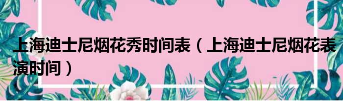 上海迪士尼烟花秀时间表(上海迪士尼烟花表演时间)