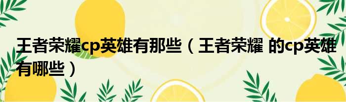 王者荣耀cp英雄有那些(王者荣耀 的cp英雄有哪些)