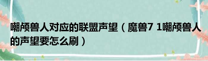 嘲颅兽人对应的联盟声望(魔兽7 1嘲颅兽人的声望要怎么刷)