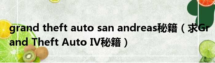 grand theft auto san andreas秘籍(求Grand Theft Auto IV秘籍)