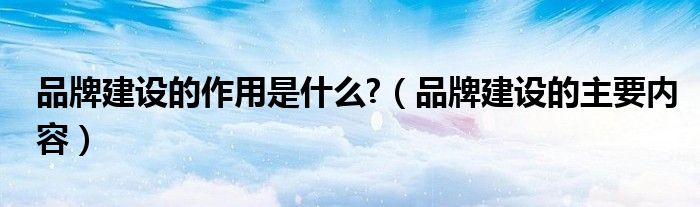 品牌建设的作用是什么?(品牌建设的主要内容)