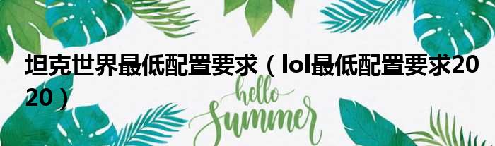 导读 大家好,小东方来为大家解答以上的问题。坦克世界最低配置要求,lol最低配置要求2020这个很多人还不知道,现在让我们一起来看看吧!1、最低配