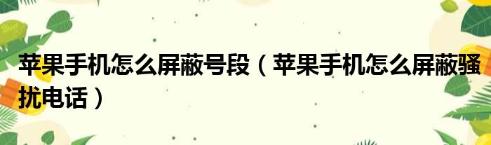 苹果手机怎么屏蔽号段(苹果手机怎么屏蔽骚扰电话)