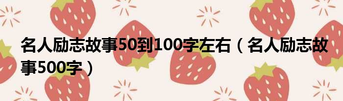 导读 大家好,小东方来为大家解答以上的问题。名人励志故事50到100字左右,名人励志故事500字这个很多人还不知道,现在让我们一起来看看吧!1、《