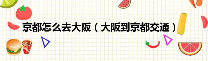 导读 大家好,小东方来为大家解答以上的问题。京都怎么去大阪,大阪到京都交通这个很多人还不知道,现在让我们一起来看看吧!1、大阪到京都的交通