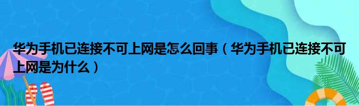 华为手机已连接不可上网是怎么回事(华为手机已连接不可上网是为什么)