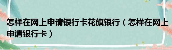 怎样在网上申请银行卡花旗银行(怎样在网上申请银行卡)
