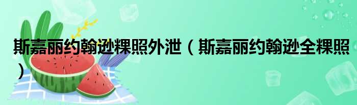 斯嘉丽约翰逊粿照外泄(斯嘉丽约翰逊全粿照)