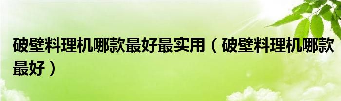破壁料理机哪款最好最实用(破壁料理机哪款最好)