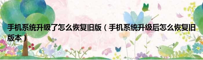 手机系统升级了怎么恢复旧版(手机系统升级后怎么恢复旧版本)