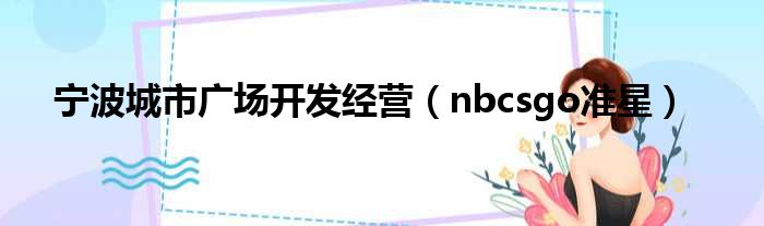 大家好,小东方来为大家解答以上的问题。宁波城市广场开发经营,nbcsgo准星这个很多人还不知道,现在让我们一起来看看吧!