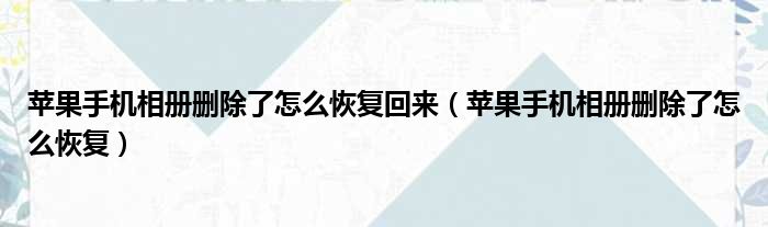 苹果手机相册删除了怎么恢复回来(苹果手机相册删除了怎么恢复)