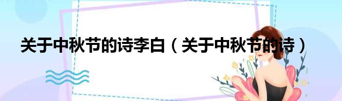 关于中秋节的诗李白(关于中秋节的诗)