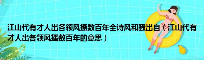 江山代有才人出各领风搔数百年全诗风和骚出自(江山代有才人出各领风搔数百年的意思)