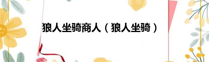 大家好,小爱来为大家解答以上问题。狼人坐骑商人,狼人坐骑很多人还不知道,现在让我们一起来看看吧!