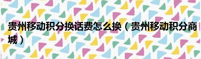 贵州移动积分换话费怎么换(贵州移动积分商城)